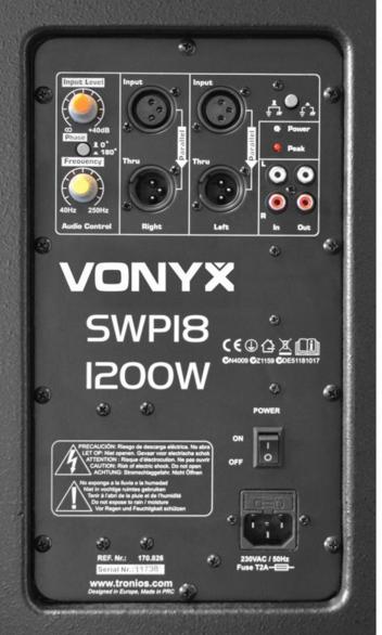 Aktywny subwoofer SWP18 PRO 18" / 1200W marki Vonyx to solidne rozwiązanie dla wszystkich, którzy poszukują dużej mocy basów w dobrej cenie. Posiada wbudowany filtr dolnoprzepustowym - dzielący pasmo pomiędzy 40Hz-250Hz 1200W Peak. Sub może być połączony z głównymi głośnikami rozkładając w bardzo efektowny sposób głębokie basy ale może być również za pomocą IN/THRU połączony z innym subwooferem.
