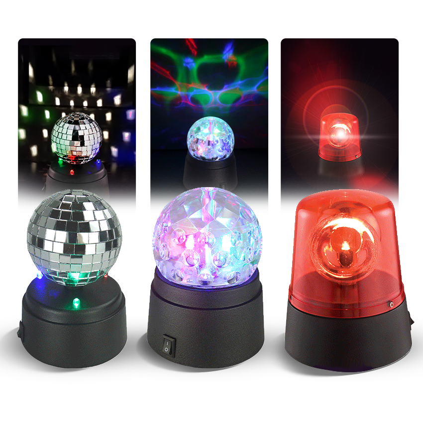 Zestaw zawiera 3 małe, zasilane bateryjnie efekty świetlne na bezpieczne imprezy z przyjaciółmi, ponieważ nie potrzebują zasilania z sieci.