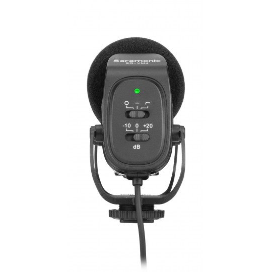 Saramonic SR-VM4 to wysokiej jakości mikrofon kondensatorowy o charakterystyce super-kardioidalnej przeznaczony dla aparatów i kamer wyposażony w zintegrowane złącze mikrofonowe mini Jack 3,5 mm TRS.
