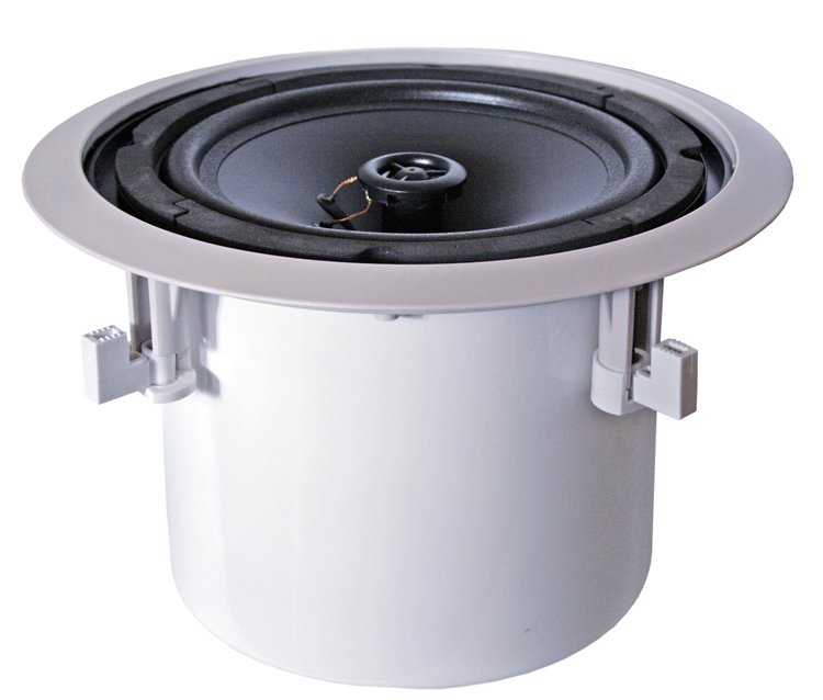 Sufitowy głośnik Hi-Fi. Woofer o średnicy 8" (ok. 200 mm) oraz 1" (ok. 25 mm) głośnik wysokotonowy. Wymiary: średnica 270 mm, wysokość 185 mm. Otwór montażowy: średnica 240 mm.